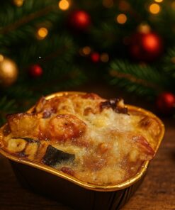 Een smaakvol eenpersoons bijgerecht op basis van ratatouille-groenten, verrijkt met rauwe ham, ei, room en kaas. Afgewerkt met aromatische Provençaalse kruiden voor een volle en hartige smaak. Bereiding: 12 minuten in een voorverwarmde oven op 175°C.